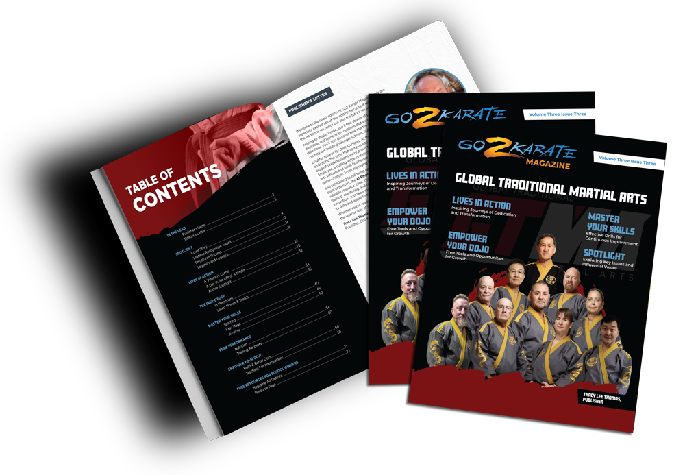 Go2 Karate Magazine is an invaluable FREE resource for Martial Artists, Enthusiastists, and School Owners featuring high-quality content crafted by leading experts. With quarterly publications, you can stay informed with tips on improving your training, learning new techniques, read about martial arts leaders and much more.
